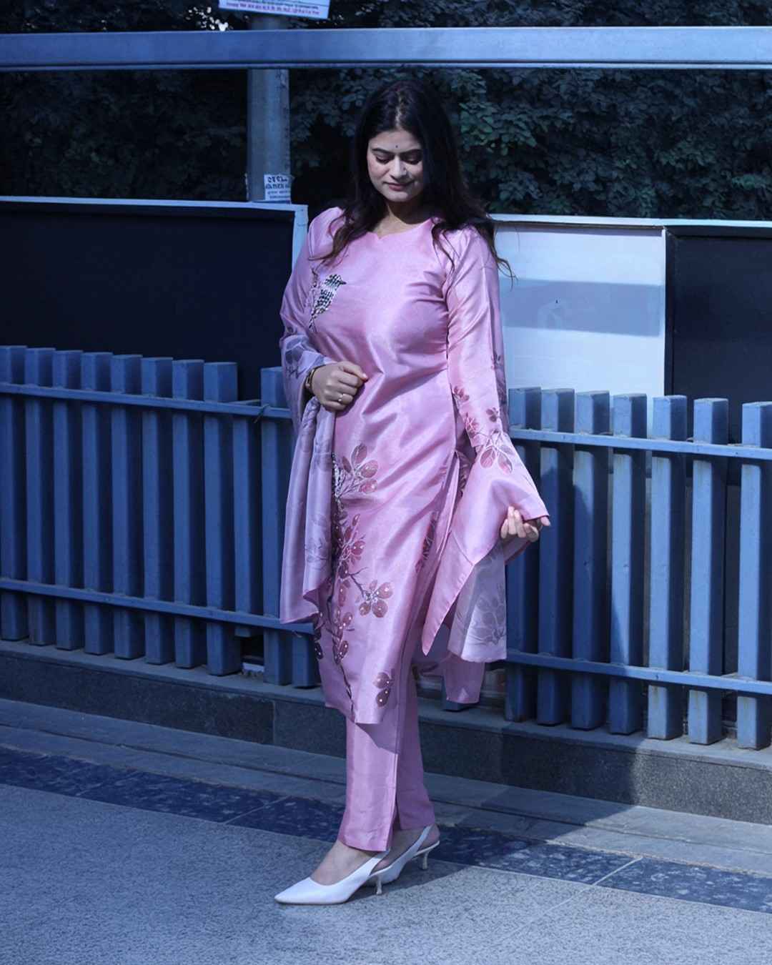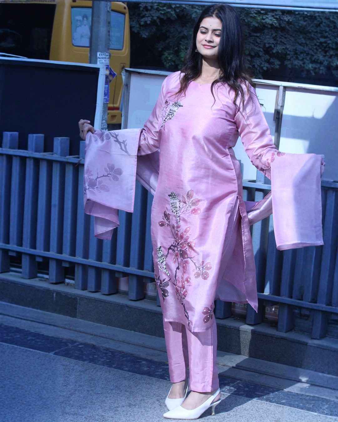 • Transparency: Kurta and pants opaque; dupatta semi-sheer