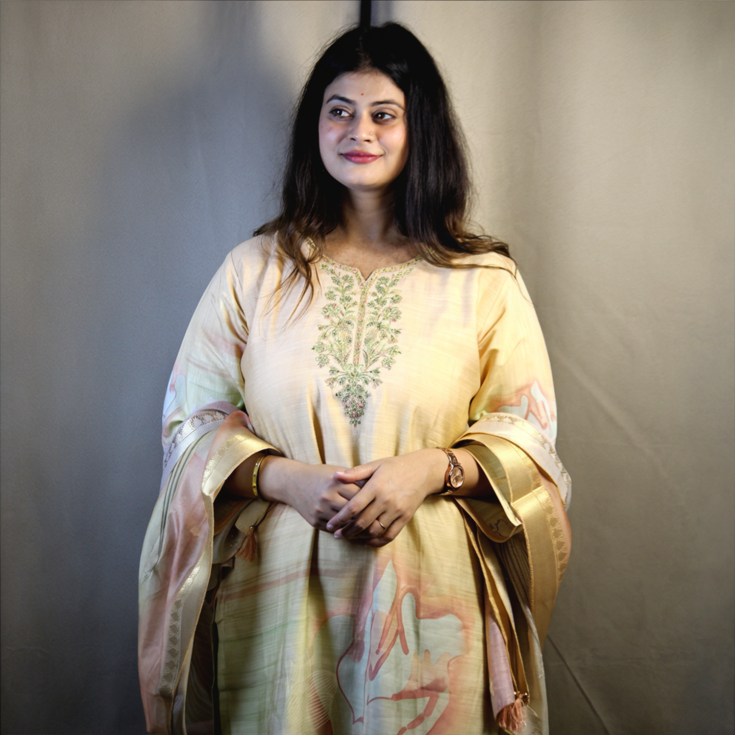 Work: Exquisite thread embroidery on the kurta front