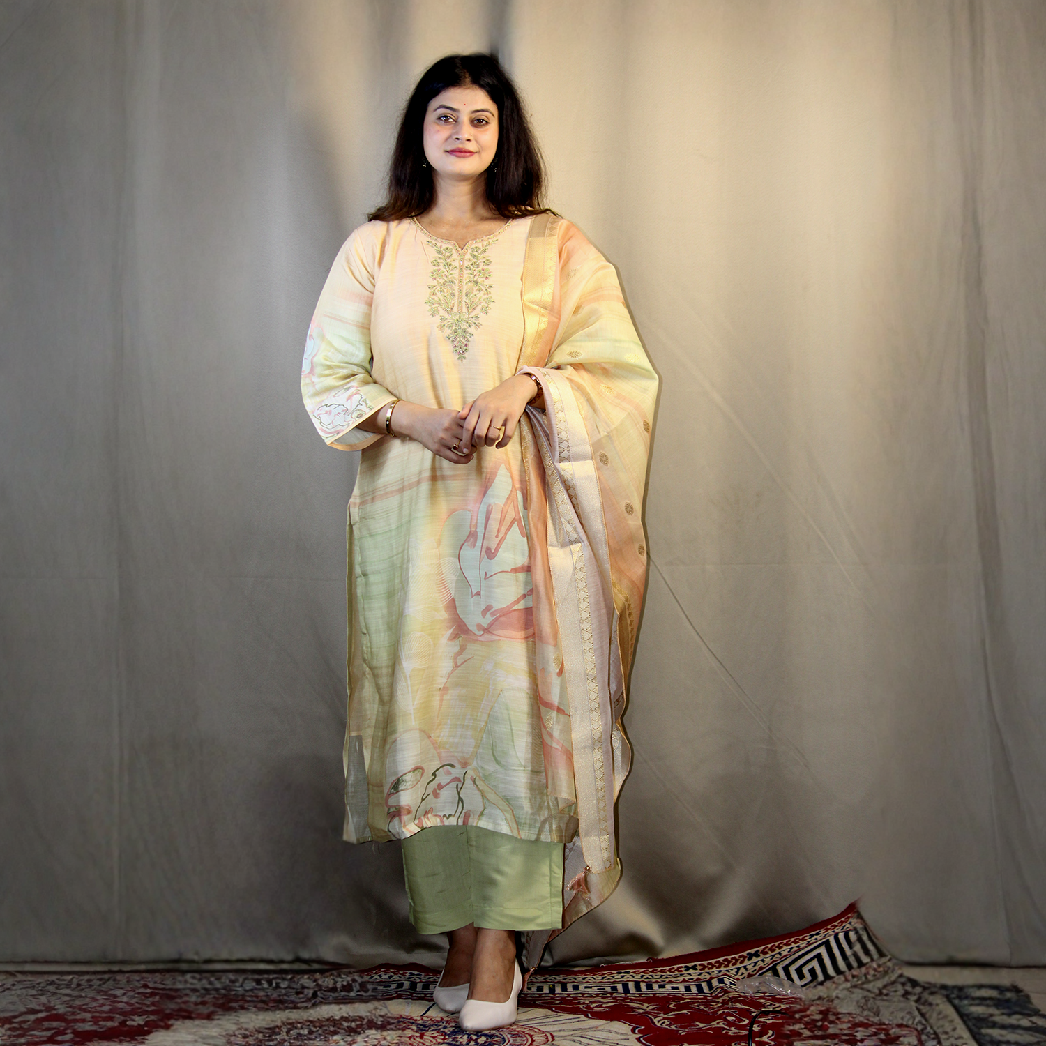 Graceful drape with lightweight dupatta featuring woven design