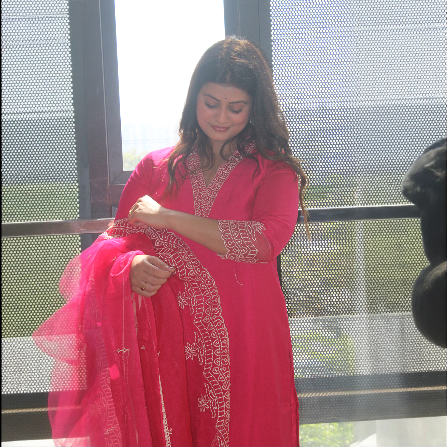 ✔ Color: Fuchsia Pink with White Thread Embroidery