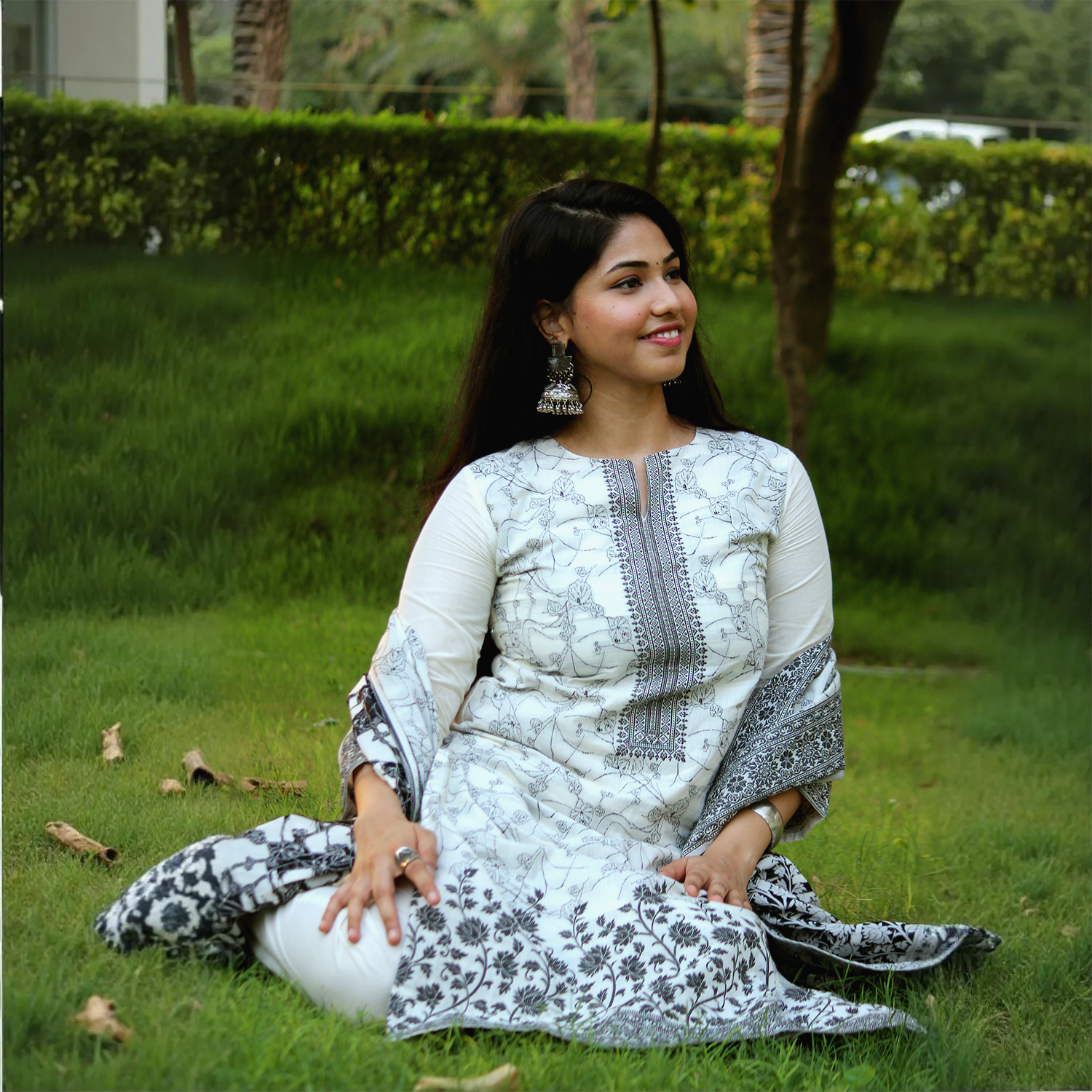 📦 Inclusions: Printed Kurta + Solid Pants + Matching Printed Dupatta