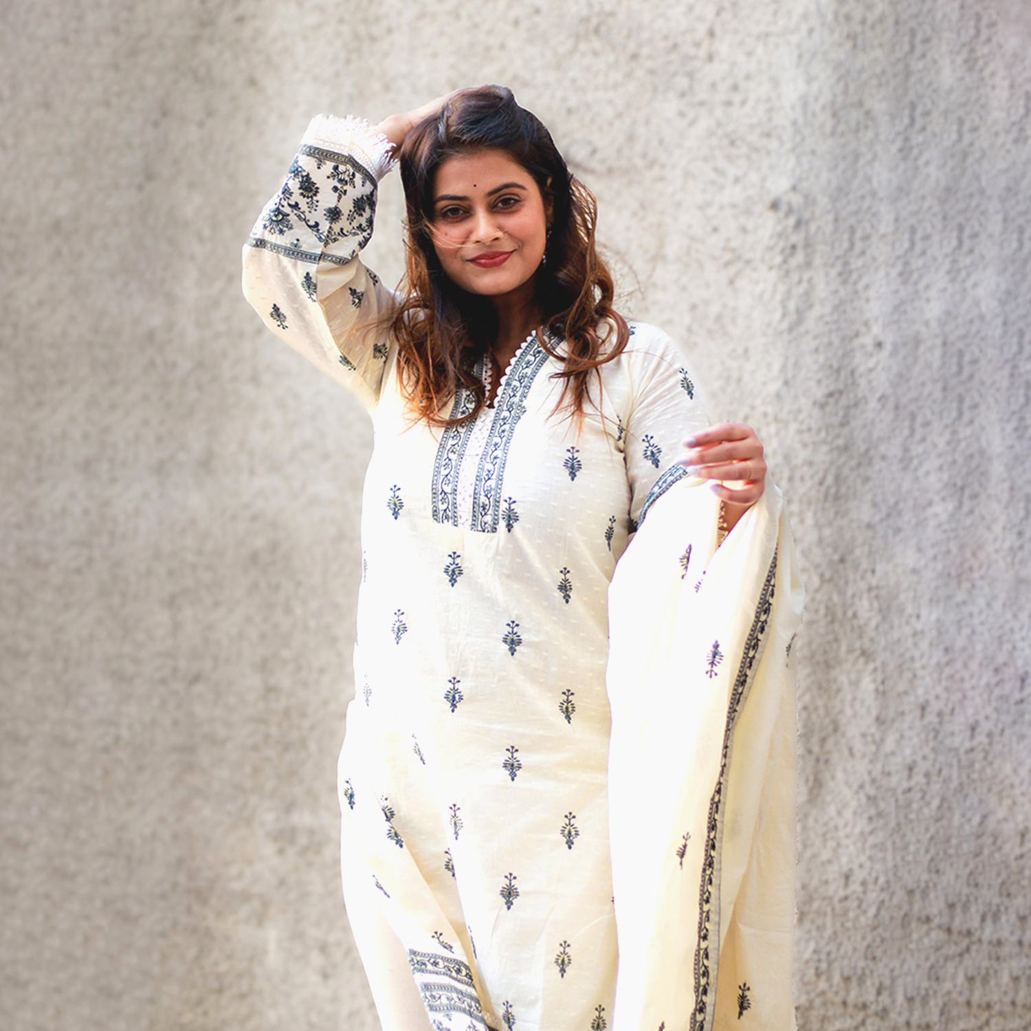 Care Instructions: Dry clean only to maintain fabric texture and embroidery quality