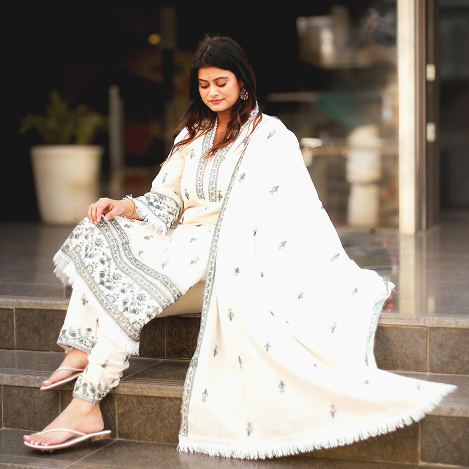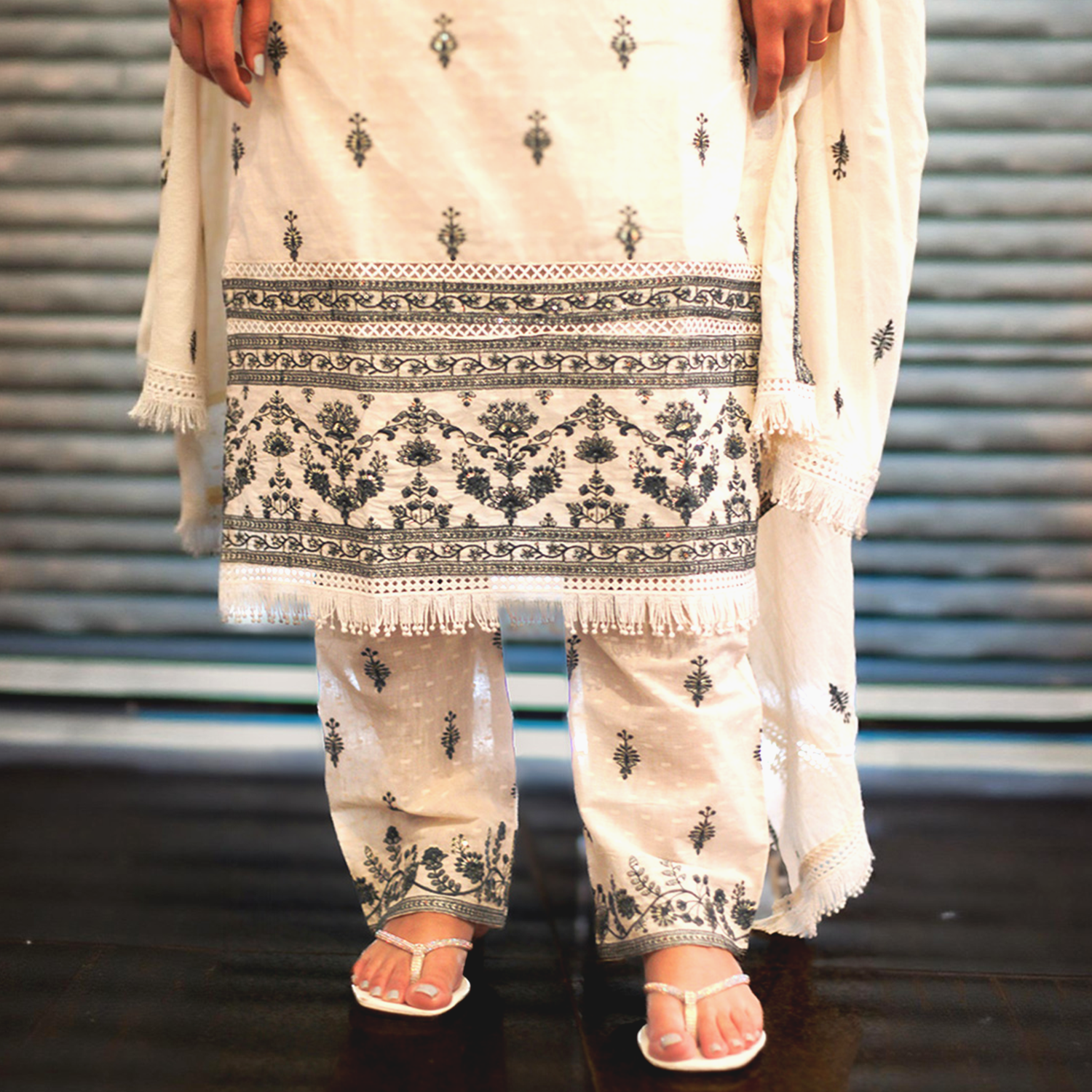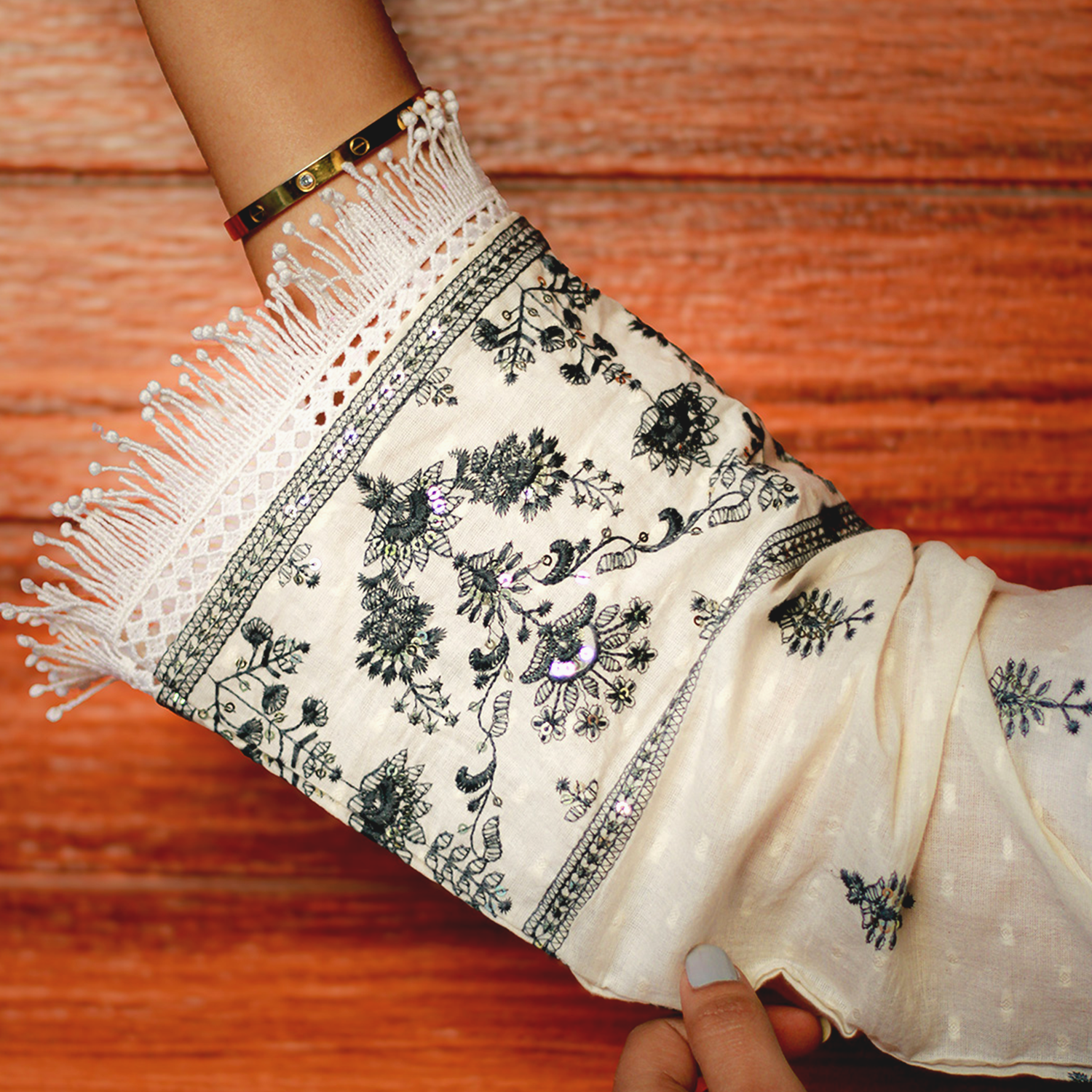 ✔ Design: Delicate embroidered motifs with a detailed border