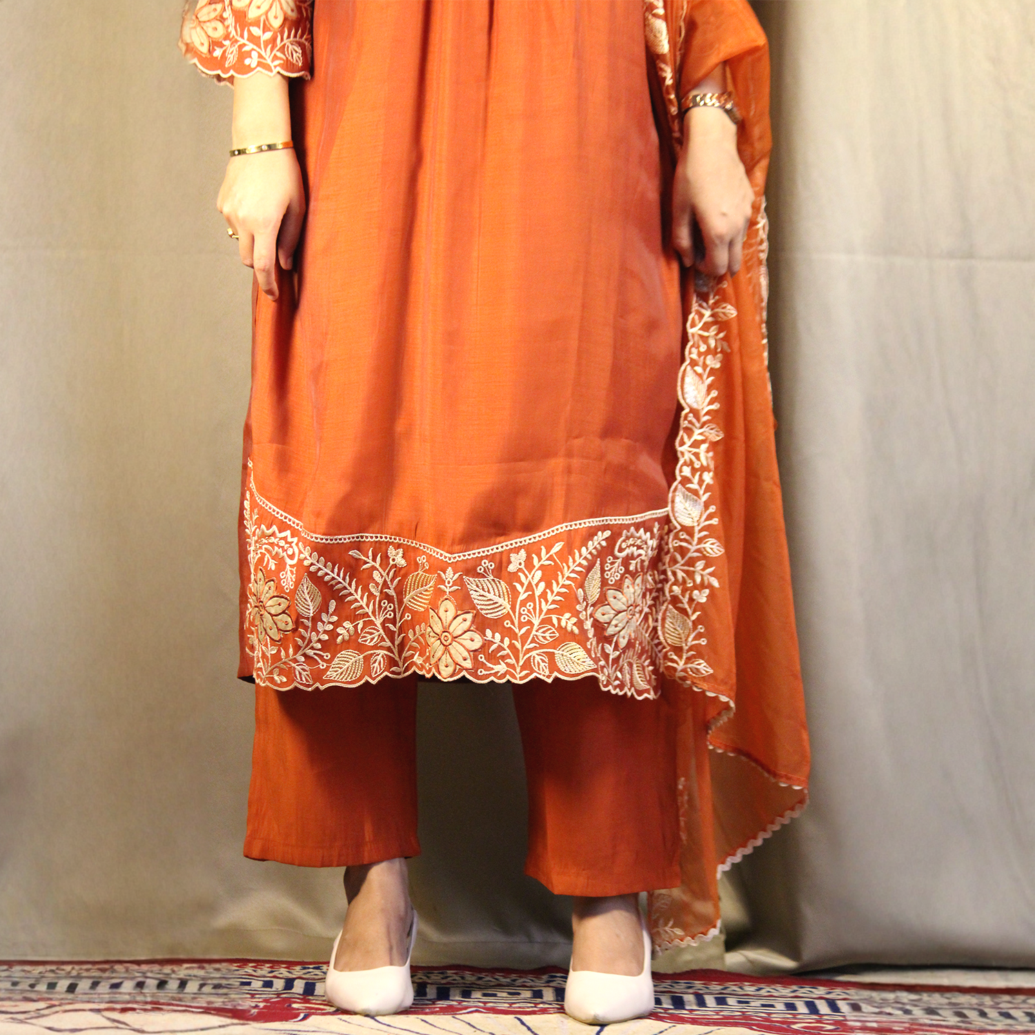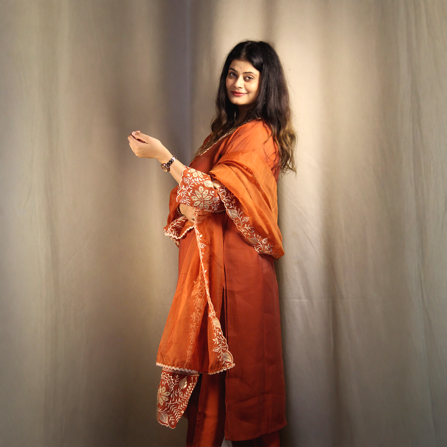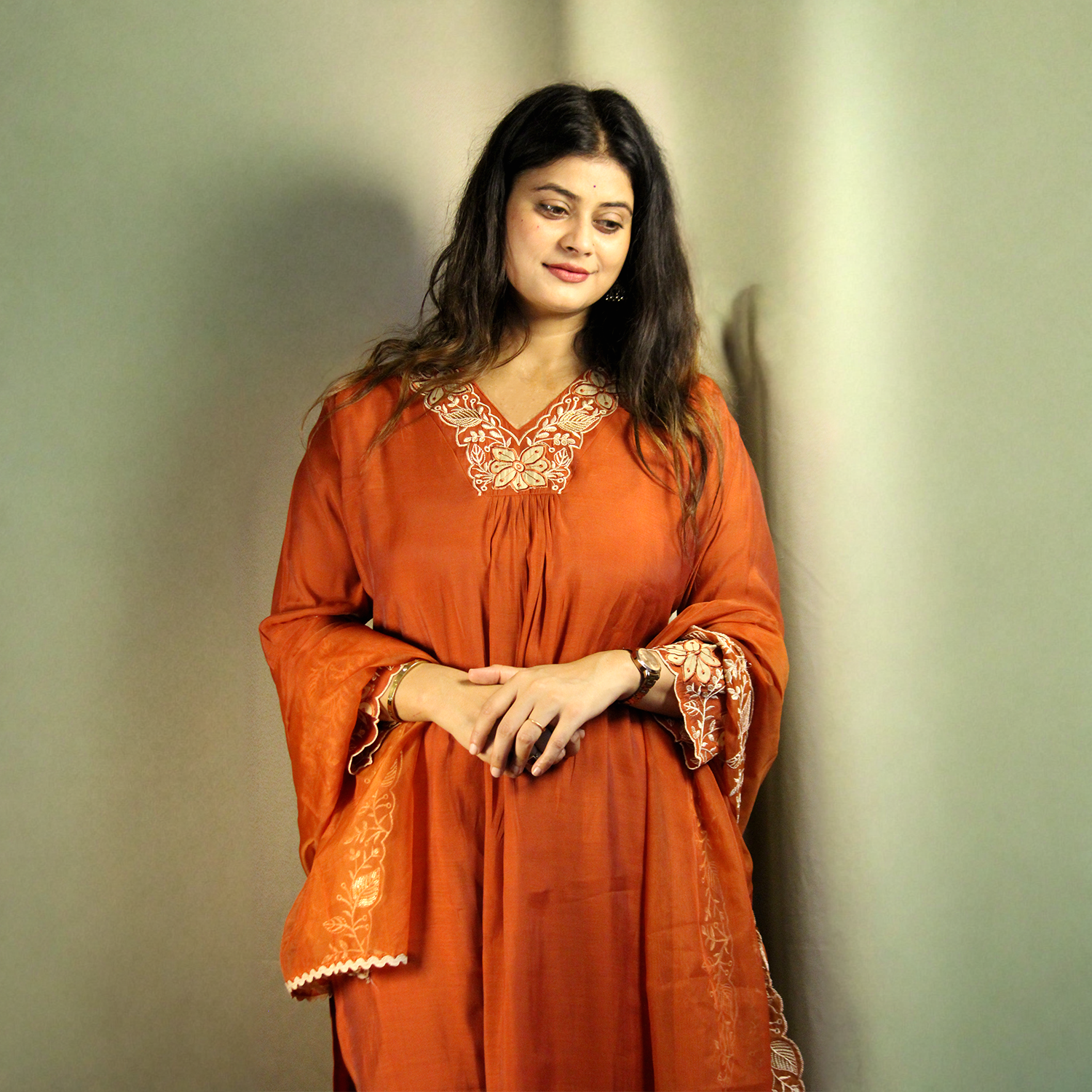 Elegant embroidery on the neckline, sleeves, hem, and dupatta