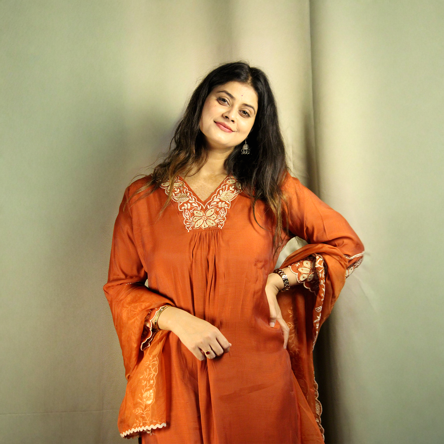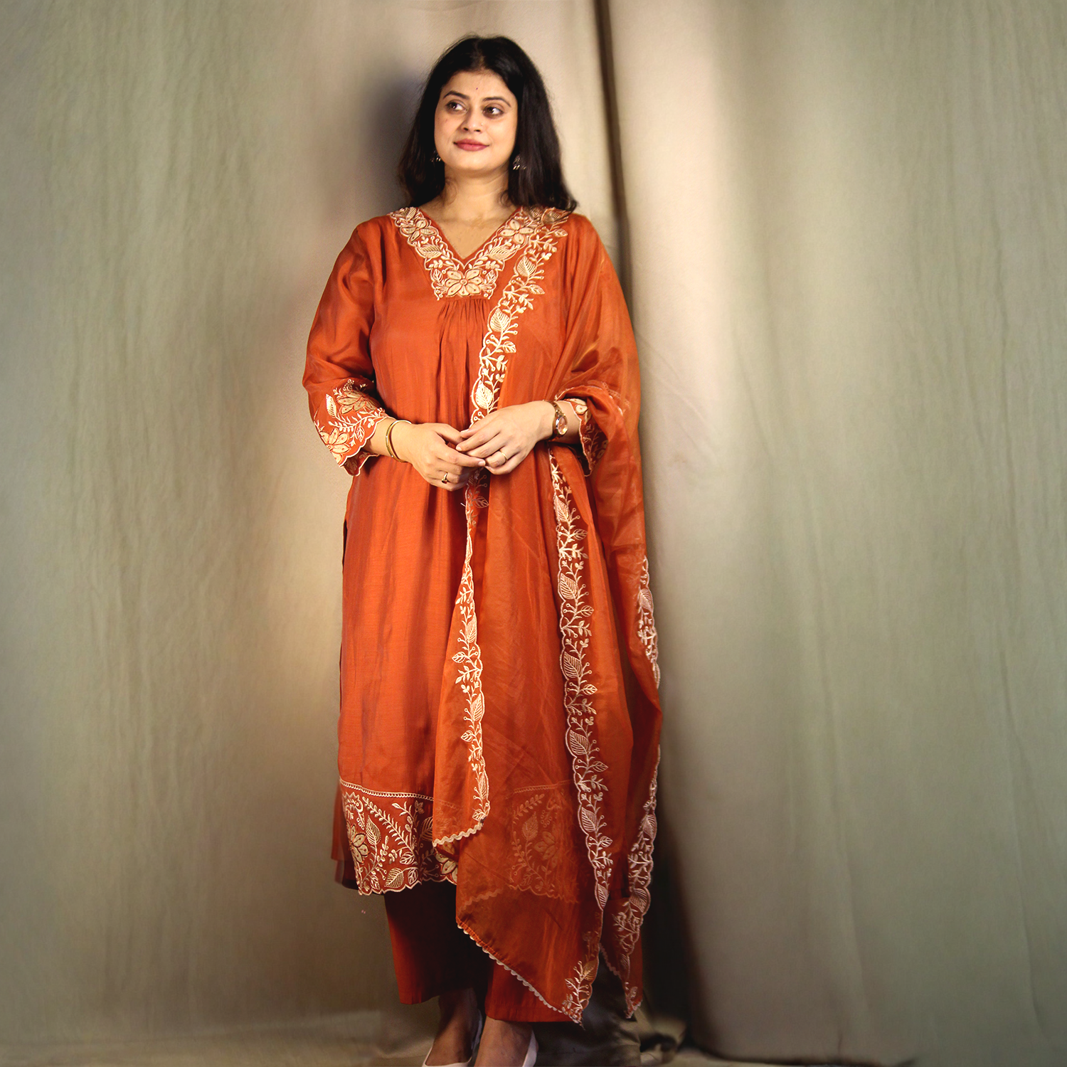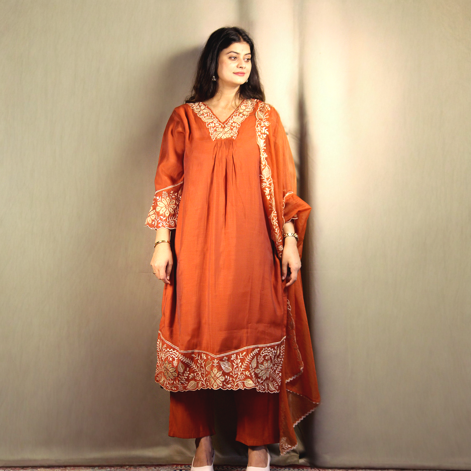 Elegant embroidery on the neckline, sleeves, hem, and dupatta